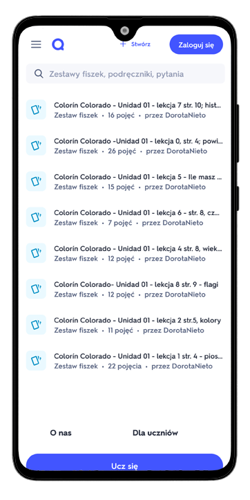 Fiszki podzielone tematycznie, inteligentny system powtórek oszczędza czas i przyspiesza naukę.